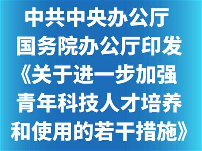 中共中央辦公廳 國務院辦公廳印發(fā)《關于進一步加強青年科技人才培養(yǎng)和使用的若干措施》