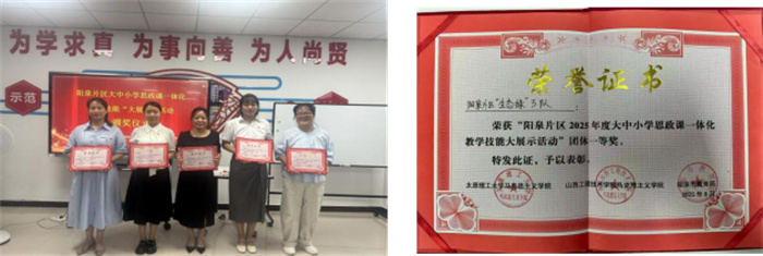 喜報:我院思政課教師在陽泉片區(qū)大中小學(xué)思政課一體化教學(xué)技能“大展示”活動中喜獲佳績