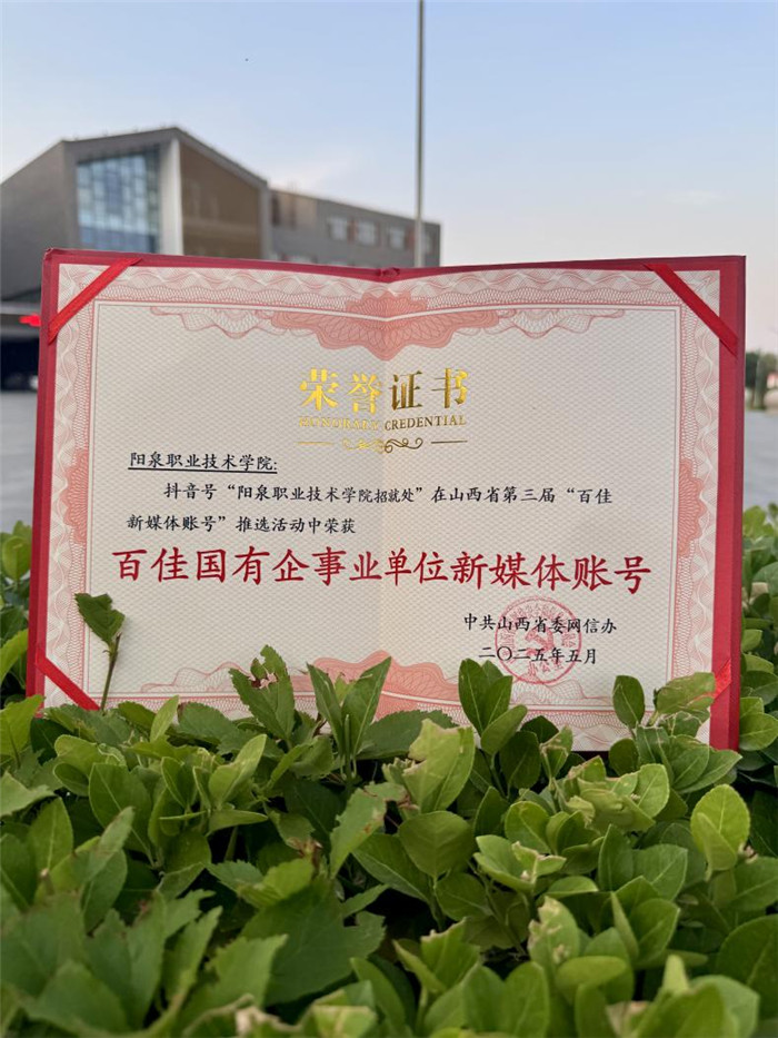 喜報(bào)!抖音號(hào)“陽(yáng)泉職業(yè)技術(shù)學(xué)院招就處”入選全省“百佳新媒體賬號(hào)”