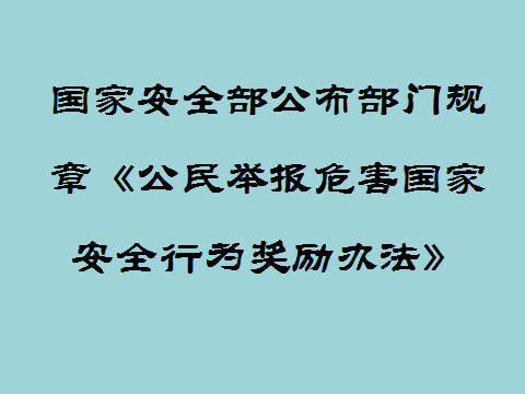 國家安全部公布部門規(guī)章《公民舉報危害國家安全行為獎勵辦法》